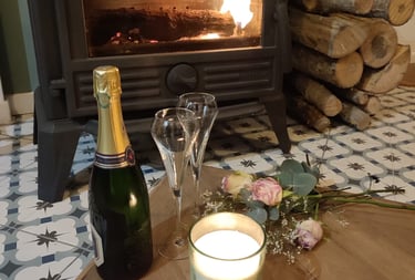 avec 2 coupes de champagne ou 1/2 bouteille de champagne.