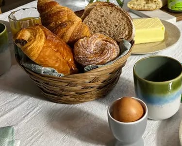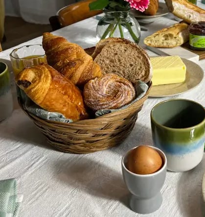 Profitez de produits de qualité : pains variés, viennoiseries, jus de fruits frais, beurre, confitures, café, thé ou chocolat, le tout pour 10€/personne.